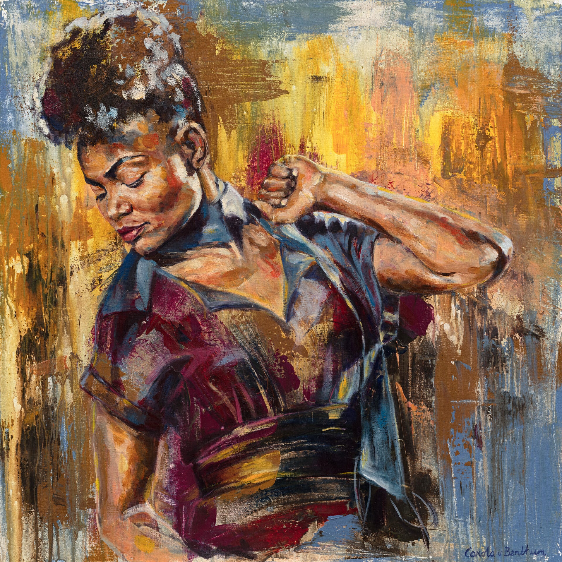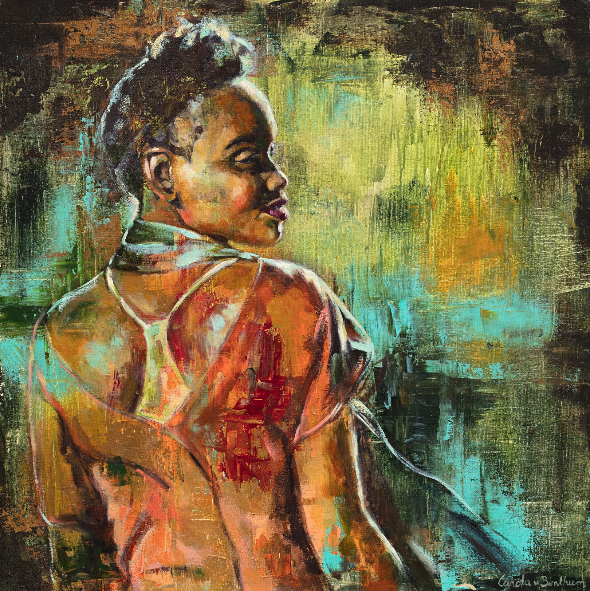 De nieuwste serie van Carola van Benthum zijn de kleurrijke werken African Beauty. In deze serie speelt model Annabel de hoofdrol.